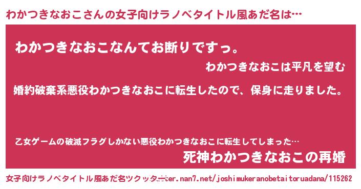 | 料理風あだ名 | 『わかつきなおこごはん』 |