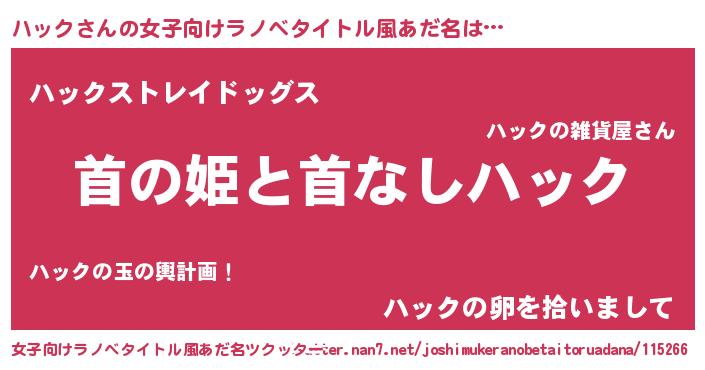 | 意味不明あだ名 | 『自称ハック』『とにかく怪しいハック』 |
