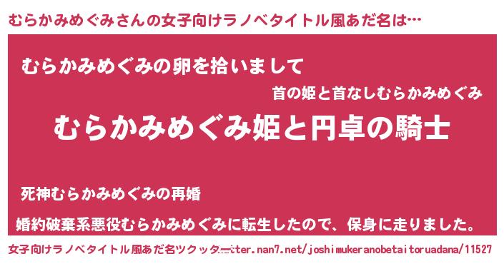 | 男性向けラノベタイトル風あだ名 | 『ムラカミメグミアートオンライン』 |