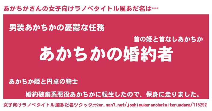 | 意味不明あだ名 | 『あかちかフォーエバー』 |