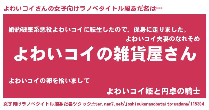 | ファンタジー風あだ名 | 『エターナルヨワイコイー』『ヨワフェル』 |