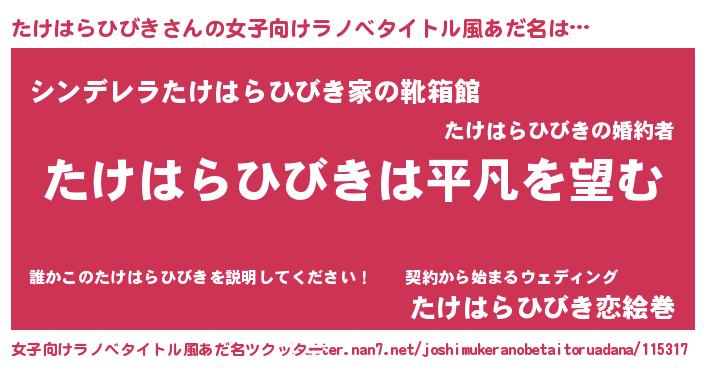 | 男性向けラノベタイトル風あだ名 | 『ダンジョンにたけはらひびきを求めるのは間違っているだろうか』 |