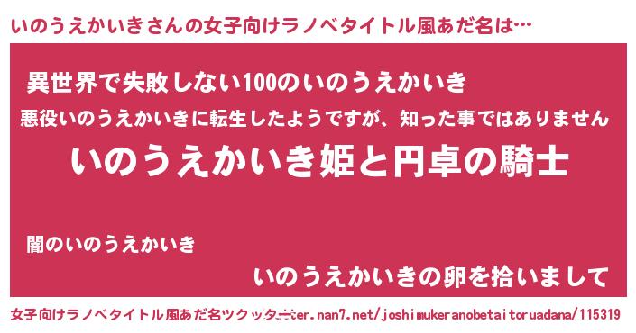 | 男性向けラノベタイトル風あだ名 | 『いのうえかいきの憂鬱』 |