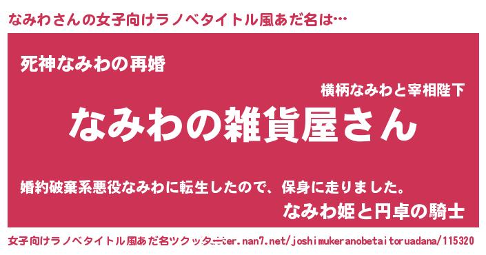 | 男性向けラノベタイトル風あだ名 | 『やはりなみわの青春ラブコメはまちがっている 』 |