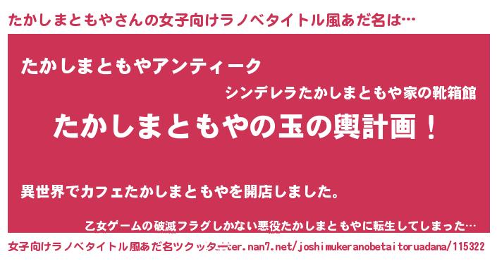 | ヘコむあだ名 | 『たかしまともや(苦笑)』『豆乳』 |