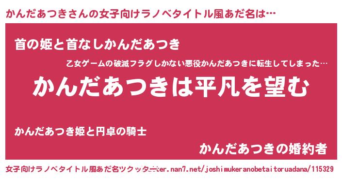 | 胡散臭い通販商品みたいなあだ名 | 『信頼と実績のサプリメント…その名も「かんだあつき」』 |