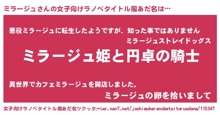 | 胡散臭い通販商品みたいなあだ名 | 『モテモテ間違いなし水晶球…その名も「ミラージュ」』 |