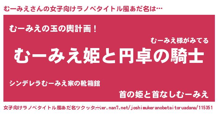 | 男性向けラノベタイトル風あだ名 | 『むーみえの憂鬱』 |