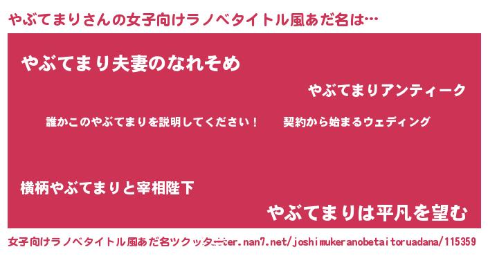 | 男性向けラノベタイトル風あだ名 | 『ヤブテマリアートオンライン』 |