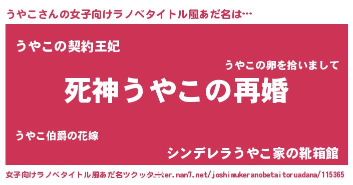 | ヘコむあだ名 | 『うやこ(笑)』『うやぷりん』『豆乳』 |
