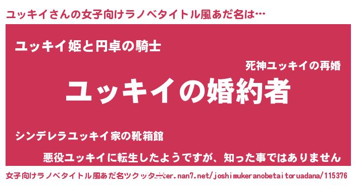 | ファンタジー風あだ名 | 『エターナルユッキイー』『ユッフェル』 |
