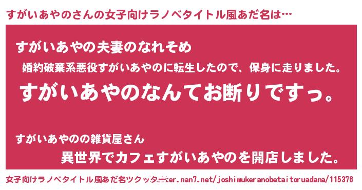 | 男性向けラノベタイトル風あだ名 | 『魔法科高校のすがいあやの』 |