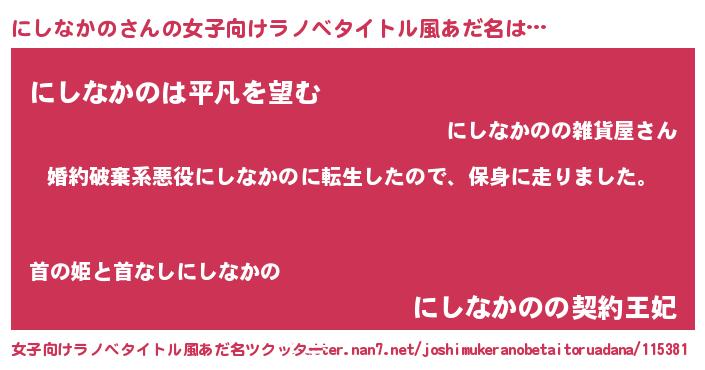 | 胡散臭い通販商品みたいなあだ名 | 『信頼と実績のサプリメント…その名も「にしなかの」』 |