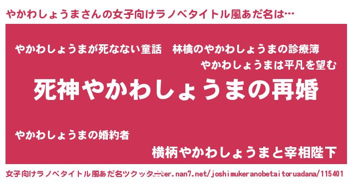 | 男性向けラノベタイトル風あだ名 | 『ノーゲーム・ノーヤカワショウマ』 |