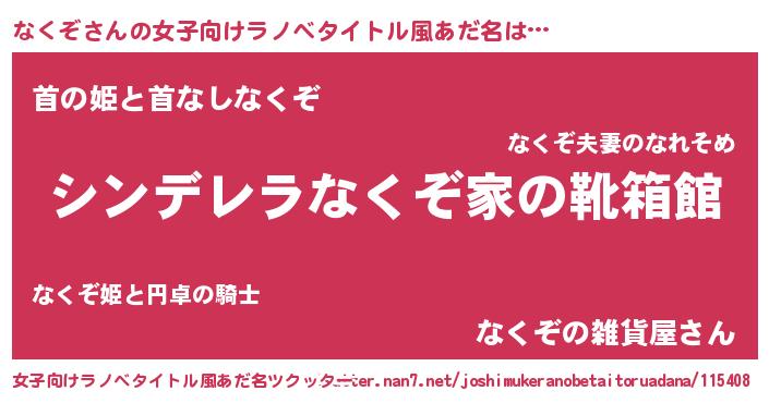 | 自動車の名前っぽいあだ名 | 『フェナーク』『ランナクギーニ』 |