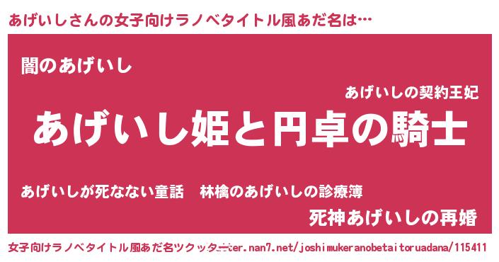 | 男性向けラノベタイトル風あだ名 | 『あげいしの憂鬱』『魔弾の王とあげいし』 |