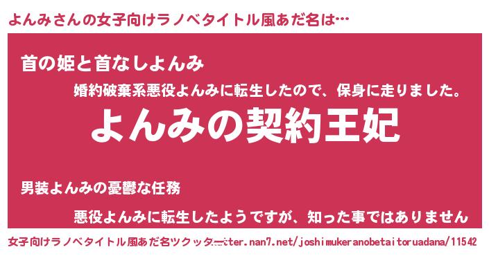 | 男性向けラノベタイトル風あだ名 | 『よんみという概念が存在しない退屈な世界 』 |