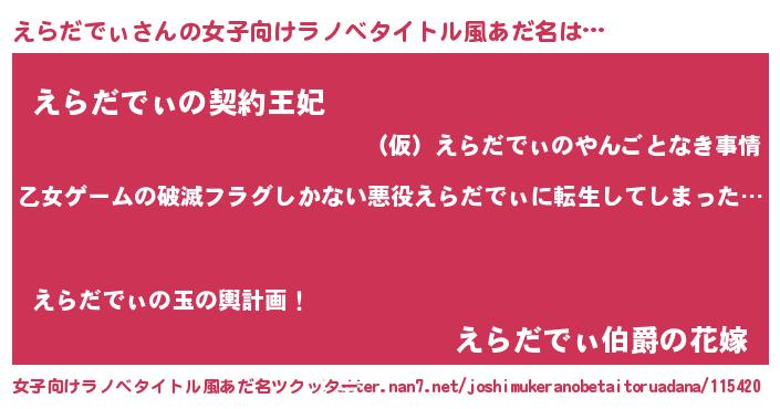 | ヘコむあだ名 | 『えらだでぃ(苦笑)』『なまこ酢』 |