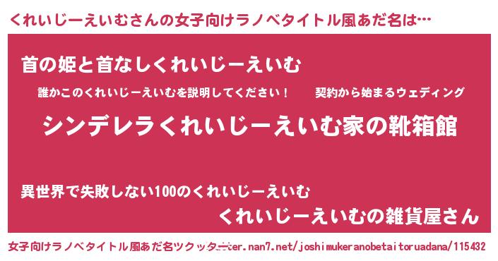 | 胡散臭い通販商品みたいなあだ名 | 『世界が平和になる高級そうな壺…その名も「くれいじーえいむ」』 |