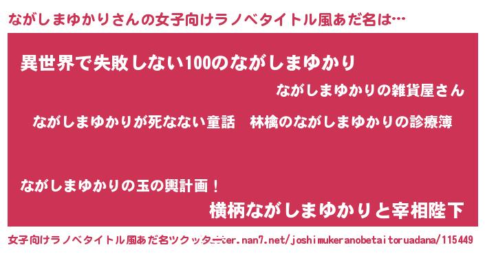| 意味不明あだ名 | 『住所不定無職ながしまゆかり(7歳)』 |
