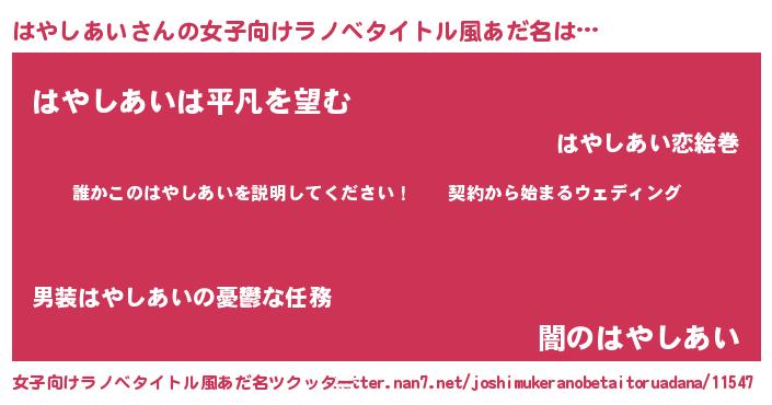 | 胡散臭い通販商品みたいなあだ名 | 『億万長者になれるブレスレット…その名も「はやしあい」』 |