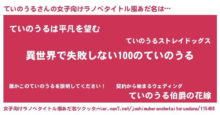 | 意味不明あだ名 | 『永久保存ていのうる』『自称ていのうる』 |