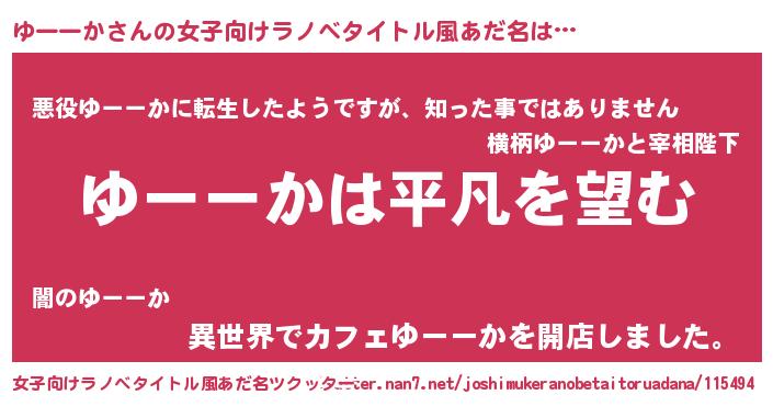 | 男性向けラノベタイトル風あだ名 | 『ダンジョンにゆーーかを求めるのは間違っているだろうか』 |