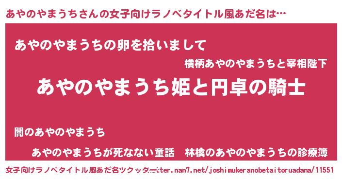 | 男性向けラノベタイトル風あだ名 | 『アヤノヤマウチアートオンライン』 |