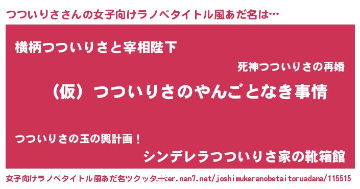 | 男性向けラノベタイトル風あだ名 | 『つついりさの憂鬱』 |