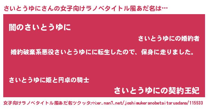 | 男性向けラノベタイトル風あだ名 | 『サイトウユニスレイヤー』 |