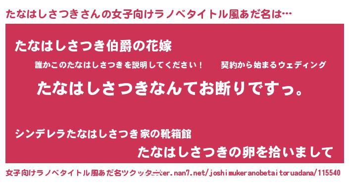 | 胡散臭い通販商品みたいなあだ名 | 『ガンによく効く高麗人参…その名も「たなはしさつき」』 |