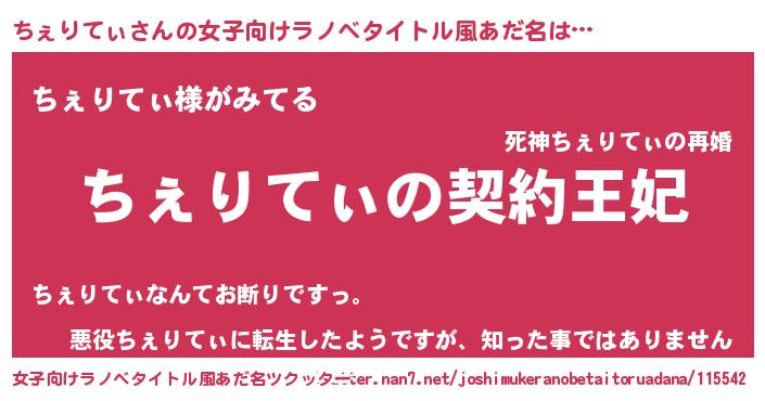 | 胡散臭い通販商品みたいなあだ名 | 『来世でも幸せになれる健康食品…その名も「ちぇりてぃ」』 |