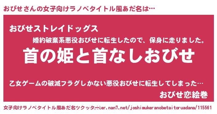 | 男性向けラノベタイトル風あだ名 | 『はたらくおびせさま!』 |