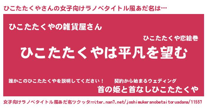 | 男性向けラノベタイトル風あだ名 | 『ダンジョンにひこたたくやを求めるのは間違っているだろうか』 |