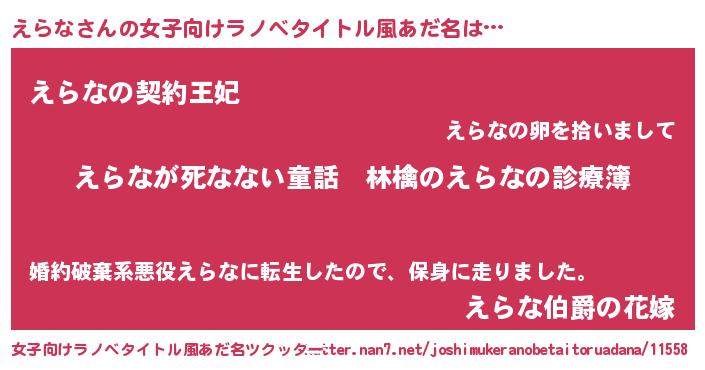 | 意味不明あだ名 | 『住所不定無職えらな(13歳)』 |
