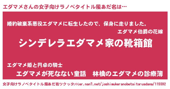 | 男性向けラノベタイトル風あだ名 | 『緋弾のエダマメ』『魔弾の王とエダマメ』 |