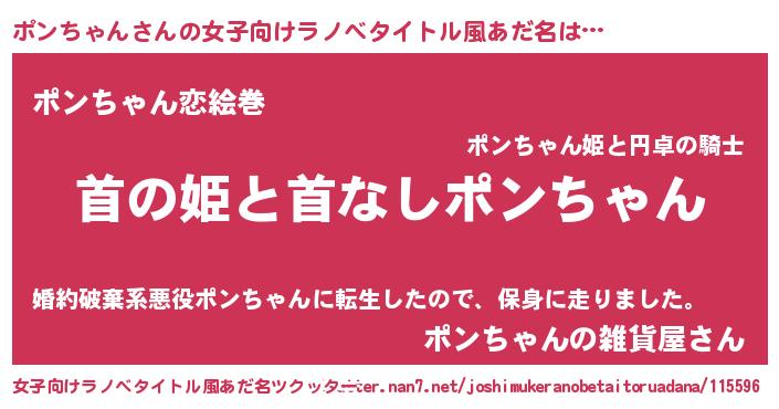 | 男性向けラノベタイトル風あだ名 | 『はたらくポンちゃんさま!』 |