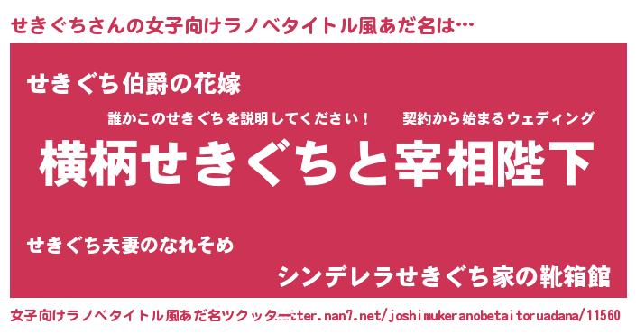 | 胡散臭い通販商品みたいなあだ名 | 『運命の人と巡り会える高級そうな壺…その名も「せきぐち」』 |