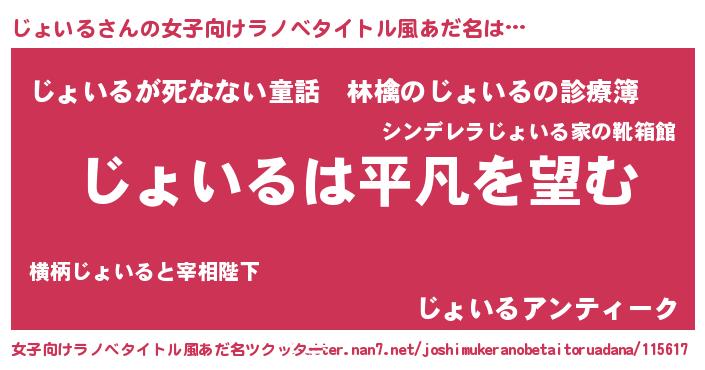 | 男性向けラノベタイトル風あだ名 | 『ダンジョンにじょいるを求めるのは間違っているだろうか』 |