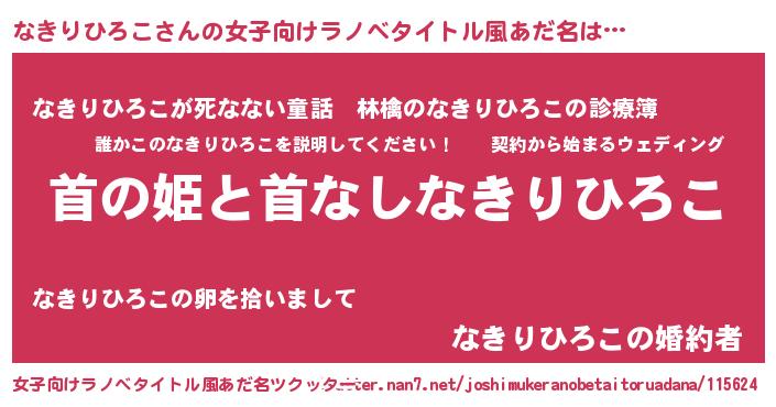| 男性向けラノベタイトル風あだ名 | 『はたらくなきりひろこさま!』 |