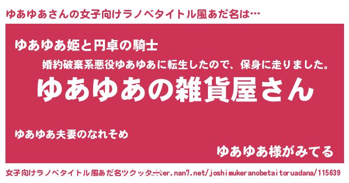 | 男性向けラノベタイトル風あだ名 | 『やはりゆあゆあの青春ラブコメはまちがっている 』 |