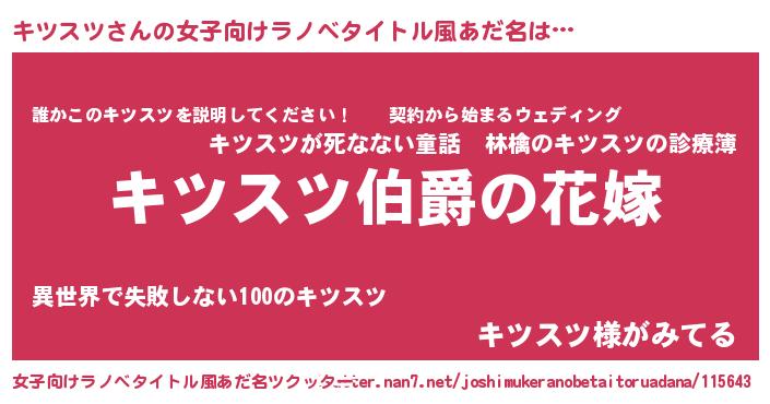 | ファンタジー風あだ名 | 『エターナルキツスツー』『キツフェル』 |