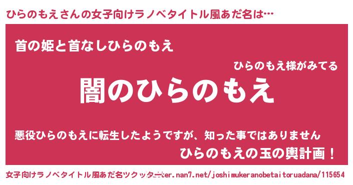 | 意味不明あだ名 | 『自称ひらのもえ』『永久保存ひらのもえ』 |