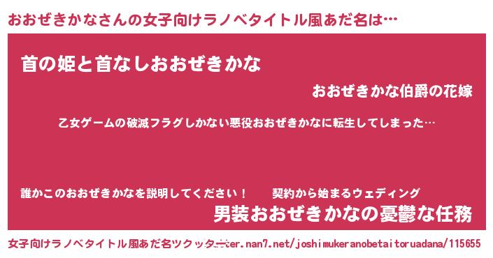 | 男性向けラノベタイトル風あだ名 | 『魔弾の王とおおぜきかな』 |