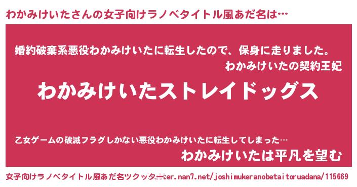 | 意味不明あだ名 | 『自称わかみけいた』 |