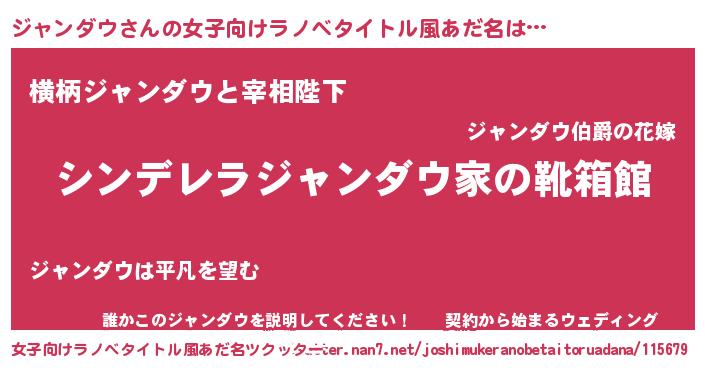 | 男性向けラノベタイトル風あだ名 | 『冴えないジャンダウの育てかた』 |