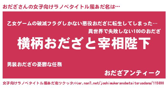 | 意味不明あだ名 | 『住所不定無職おだざ(74歳)』『自称おだざ』 |