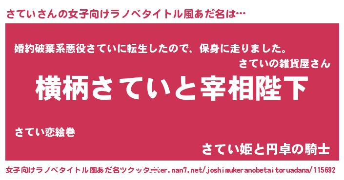 | 胡散臭い通販商品みたいなあだ名 | 『モテモテ間違いなし水晶球…その名も「さてい」』 |