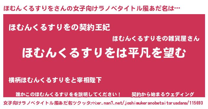 | 意味不明あだ名 | 『とにかく怪しいほむんくるすりを』 |