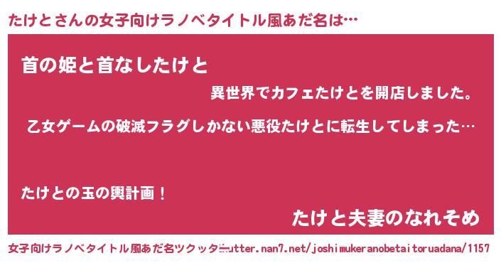 | 意味不明あだ名 | 『住所不定無職たけと(40歳)』 |